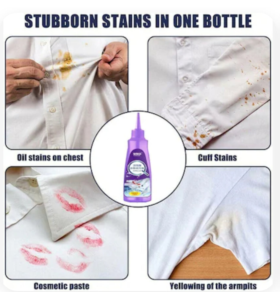 Widely used, 120ml stain remover is suitable for white, dark, colored, and all washable fabrics, just a few drops can remove old and new protein and mud stains such as coffee, tea, ink, juice, and wine Wait for any stains.